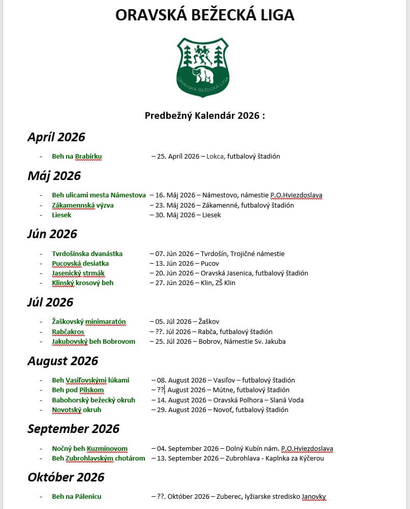 - Beh na Pálenicu – ??. Október 2026 – Zuberec, lyžiarske stredisko Janovky